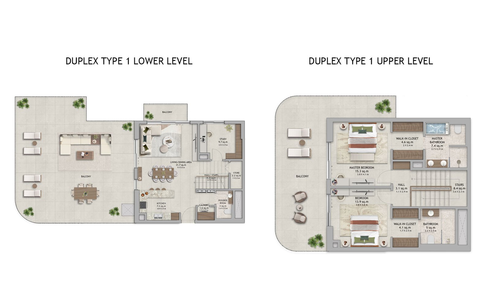 2 Bedroom | - | Type 1, Lower & Upper Level | On Request | Apartment |