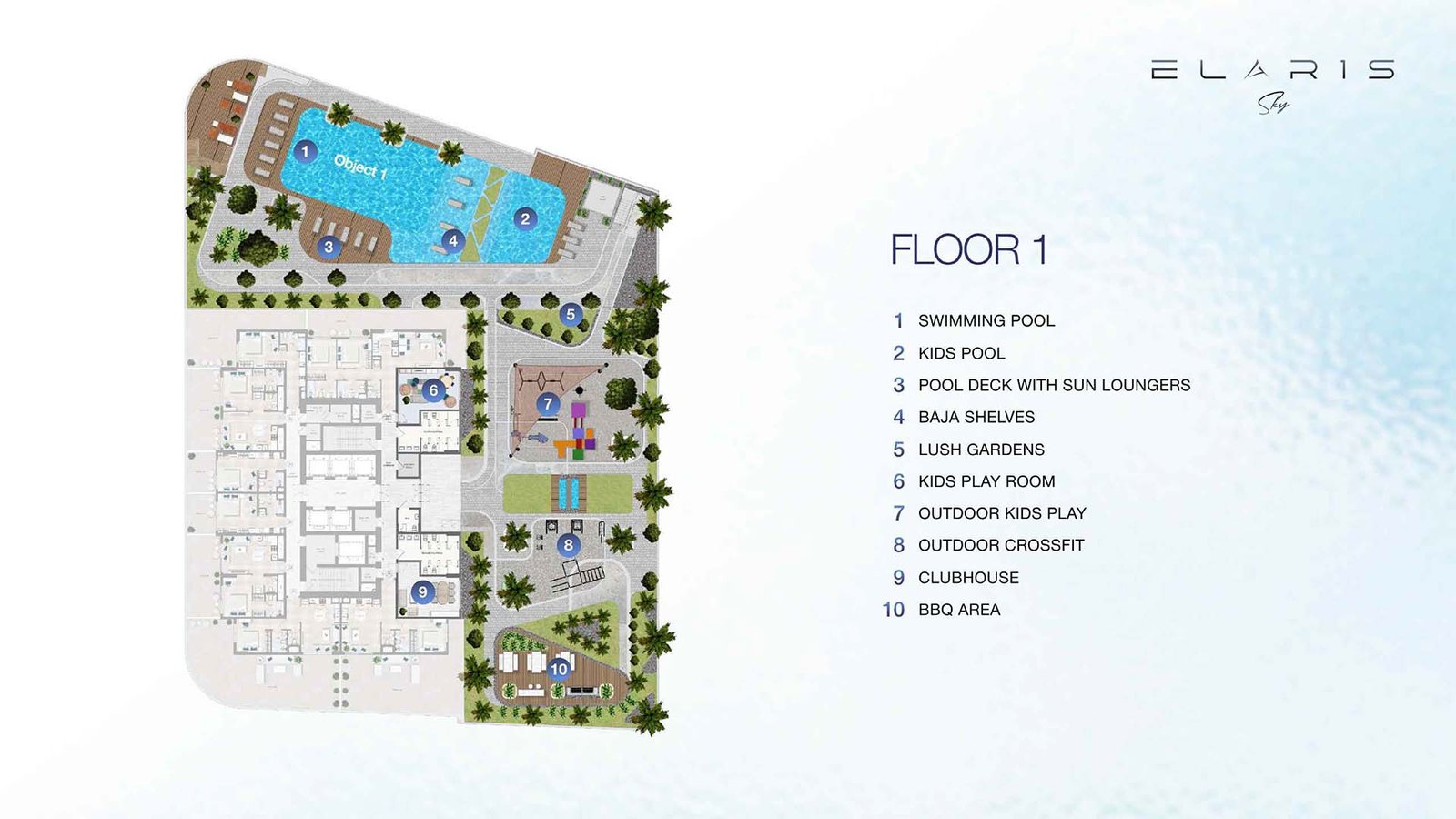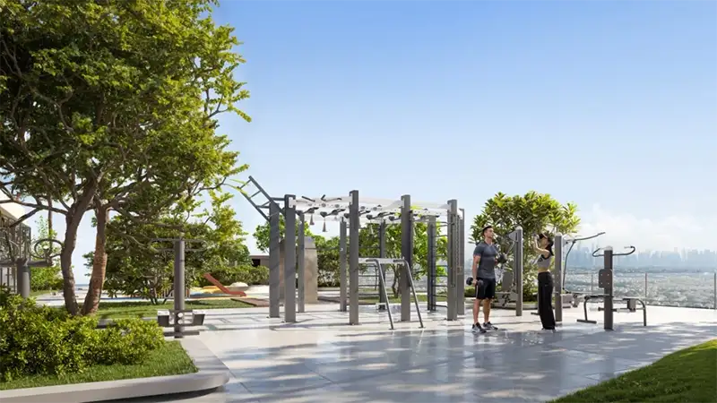 Elaris Sky by Object 1 Development presents a striking vertical sanctuary in JVT Dubai, featuring a diverse selection of studios, one-bedroom, and two-bedroom apartments. The name of this exquisite tower is inspired by the Greek language, symbolizing the natural elements of light and air. More than just a construction of concrete, metal, and glass, Elaris Sky embodies a harmonious paradise that reflects the vitality of nature. Located in the sustainable and well-connected region of the Emirates, Jumeirah Village Triangle is a green freehold district characterized by a thriving suburban atmosphere. The tower’s timeless architecture creates an inclusive environment where living, working, and leisure activities seamlessly blend together. The contemporary and intricate design boasts luxurious private and shared spaces that engage with the surrounding landscape. Every aspect has been thoughtfully considered, with details that exude sophistication, from clean lines and sharp edges to well-framed units and a beautifully landscaped podium adorned with trees and greenery. The interiors of the apartments are visually appealing, offering ample storage and well-designed layouts that enhance the living experience. Furthermore, the integration of parking, retail, office spaces, and various amenities within the complex promotes a balanced and fulfilling daily lifestyle.