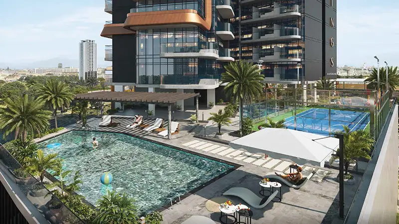 Empire Livings at Dubai Science Park represents a distinguished residential contribution by Empire Developments to the innovative mixed-use environment, offering studios, one-bedroom apartments, and duplexes. This low-rise development stands as a remarkable achievement, featuring a meticulously crafted design that exudes innovation, timelessness, and sophistication. The building is distinguished by its open and visually appealing facade, complemented by thoughtfully sculpted traditional details and an elegant exterior. It comprises functional yet luxurious homes that celebrate a lifestyle rich in experiences. The incorporation of smart home technology alongside upscale leisure and relaxation amenities ensures a seamless and convenient living experience for residents. Situated in a dynamic healthcare-focused business district, residents will have access to a multitude of thriving opportunities. This architectural gem rises with 14 residential floors and a rooftop, featuring multiple podiums set on an expansive ground area. With its sleek curves, harmoniously arranged balconies, and a podium terrace that offers additional communal spaces, this tower is poised to become a landmark that embodies an elevated lifestyle. Here, your home transcends mere living quarters; it becomes a sanctuary for unwinding, relaxation, and enjoying privacy, all while benefiting from modern conveniences in well-designed, functional spaces. The regal color palette and premium finishes, combined with exquisitely soft textures and high-quality materials, ensure that every corner reflects a dedication to precision and craftsmanship.