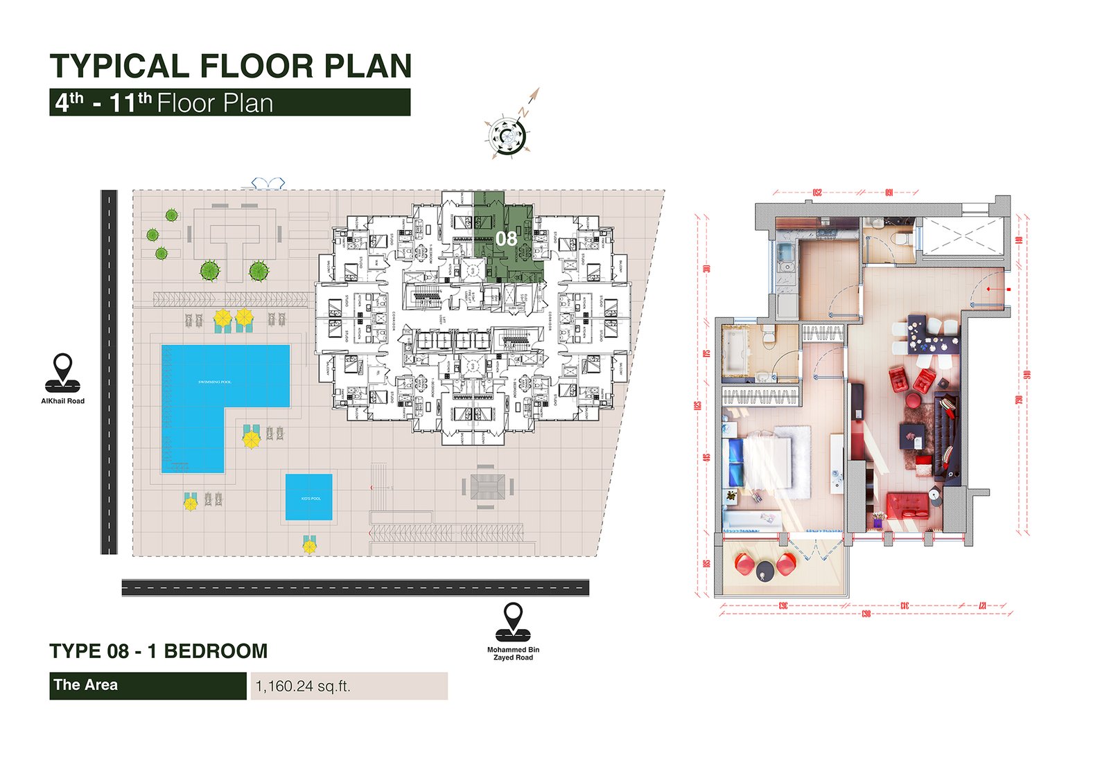 1 Bedroom - 1 Bedroom Type 08, Size 1160 Sq Ft 1160.00 Sq Ft Apartment