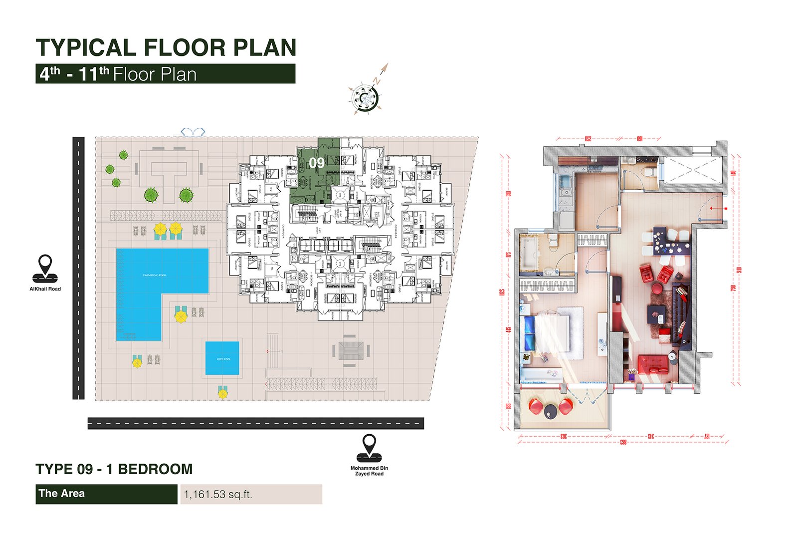 1 Bedroom - 1 Bedroom Type 09, Size 1161 Sq Ft 1161.00 Sq Ft Apartment