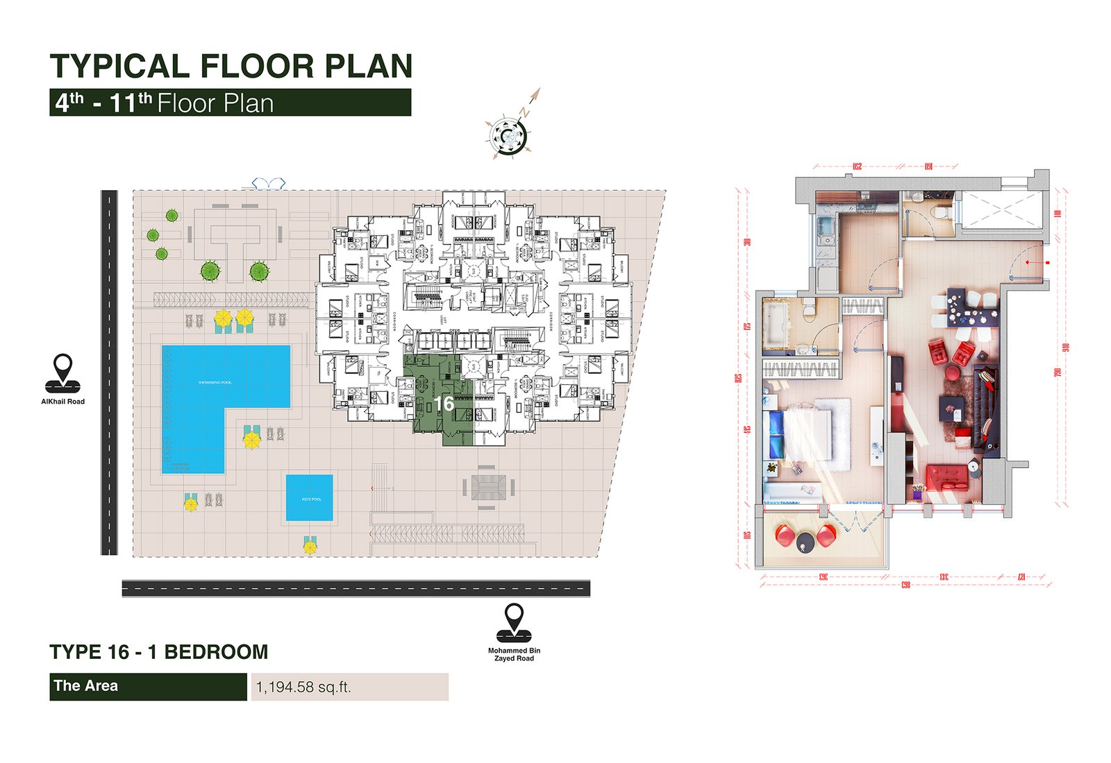 1 Bedroom - 1 Bedroom Type 16, Size 1194 Sq Ft 1194.00 Sq Ft Apartment