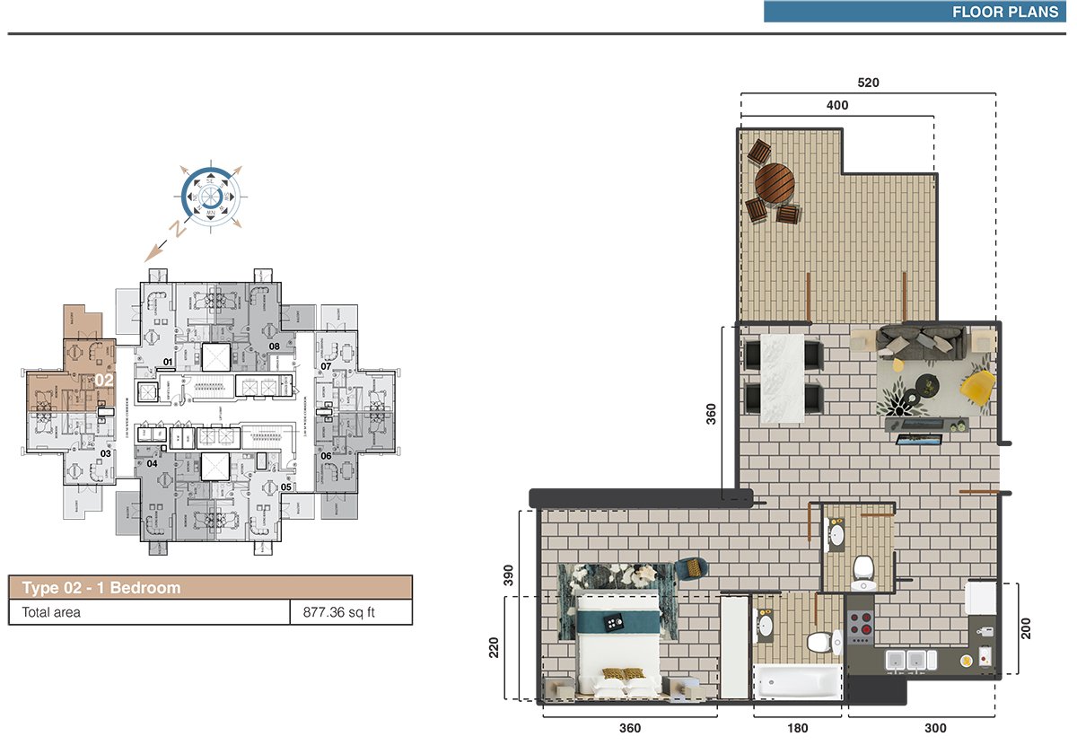 1 Bedroom | - | 1bd-type02-877.36 sqft | 877.36 Sq Ft | Apartment |