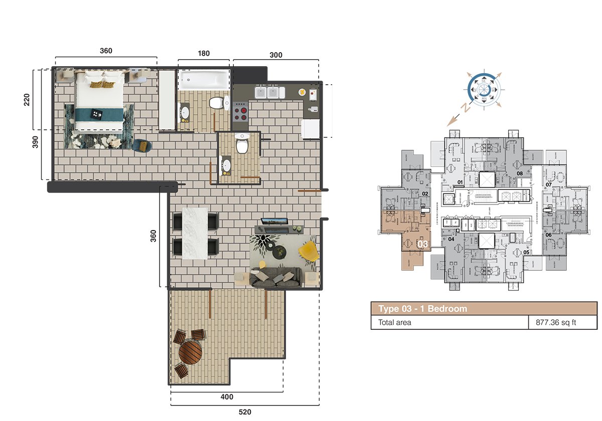 1 Bedroom | - | 1bd-type03-877.36 sqft | 877.36 Sq Ft | Apartment |