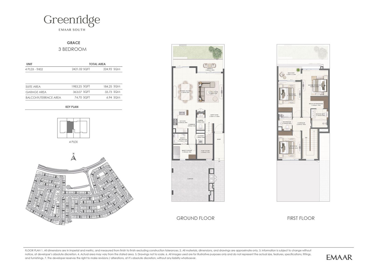 Greenridge at Emaar South is the newest residential offering from Emaar Properties, featuring exclusive 3 and 4-bedroom townhouses within a vibrant community. The architectural design promises a tranquil living experience surrounded by lush greenery and serene leisure spaces. These homes embody contemporary elegance and modern aesthetics, catering to families and individuals seeking luxury and relaxation in an idyllic setting equipped with premium facilities. The beautifully landscaped area of Emaar South provides a prestigious address in Dubai, conveniently located near Expo City Dubai and Al Maktoum International Airport, making it a future landmark in the region. The south zone seamlessly integrates modern living with easy access to Dubai’s key business districts and attractions through well-connected roads and highways. This flourishing community exemplifies a family-oriented lifestyle, offering residents everything they need within close reach. The thoughtfully designed townhouses focus on fostering a community where families can grow, connect, and create lasting memories. These spacious homes harmoniously blend modern architecture with natural beauty, emphasizing privacy while encouraging community interaction. Inspired by nature, the contemporary designs reflect a balance of modernity and organic elements, with earthy tones and sleek lines that are sure to impress both residents and visitors. The exteriors are artistically crafted to blend seamlessly with the natural surroundings, while the interiors provide bright and welcoming spaces for all to enjoy. Each townhouse serves as a peaceful sanctuary, featuring expansive living areas, stylish kitchens, and thoughtfully designed bedrooms that balance comfort and functionality. This development transcends luxurious living by offering a variety of amenities and a hub for relaxation and activities. Residents can indulge in an 18-hole championship golf course, surrounded by impeccably manicured greens and a world-class clubhouse. The lively community center includes a gym, pool, and multipurpose room for various activities. For outdoor enthusiasts, there are fitness areas, walking paths, and a basketball court, ensuring that there is always something enjoyable to explore. Key highlights include spacious 3- and 4-bedroom townhouses designed for modern living, situated in the rapidly growing Emaar South community near Expo City Dubai and Al Maktoum International Airport. The contemporary architecture blends seamlessly with the natural environment, and residents benefit from state-of-the-art amenities such as a gym, pool, and community center. The interiors are adorned with earthy tones, spacious layouts, and stylish finishes that prioritize both comfort and elegance, while lush parks and shaded pathways contribute to a peaceful, nature-inspired atmosphere. Family-friendly amenities include safe play areas for children, a community garden, and walking paths, alongside outdoor fitness options, basketball courts, and the championship golf course, ensuring a fulfilling lifestyle for all.