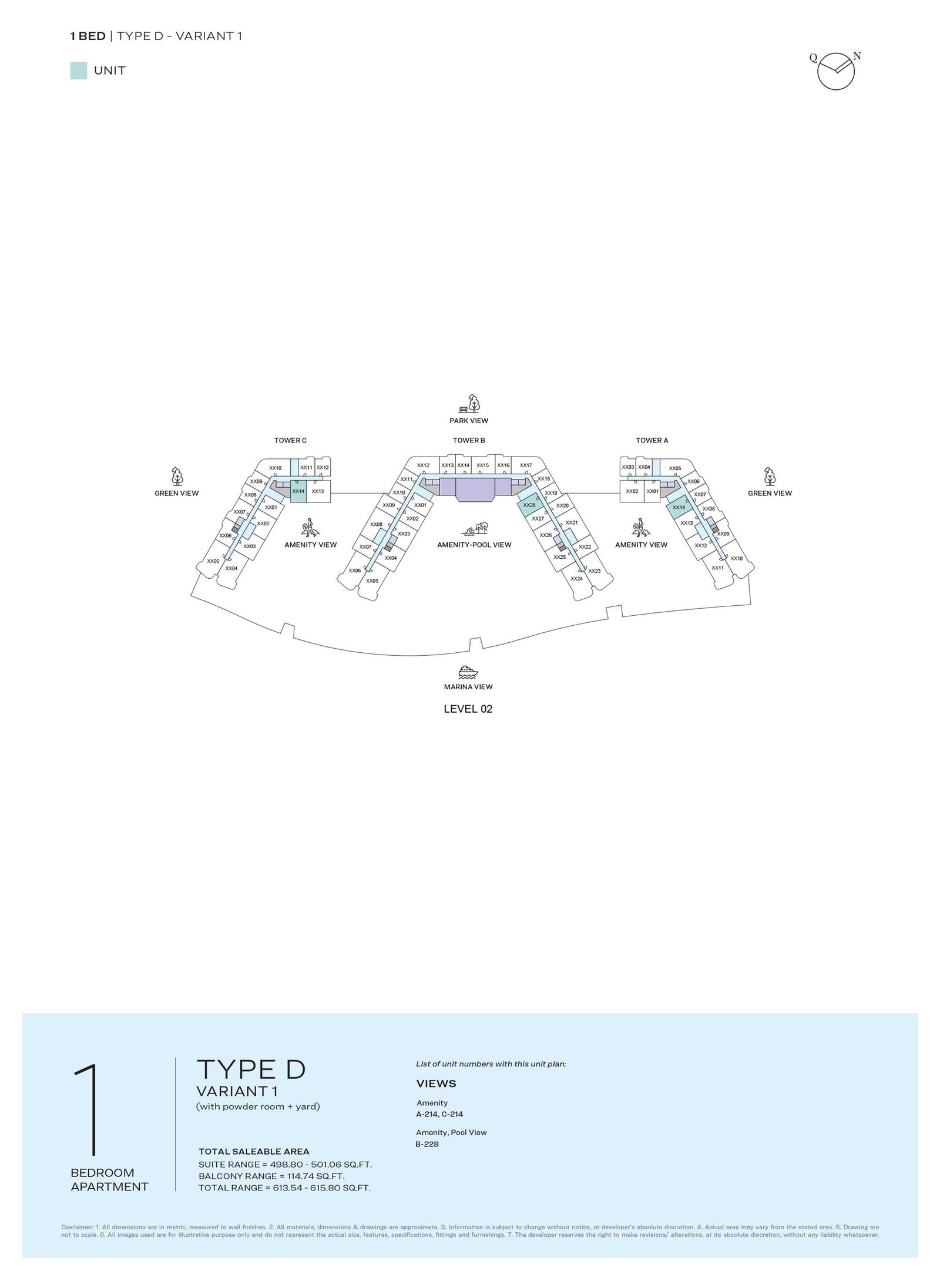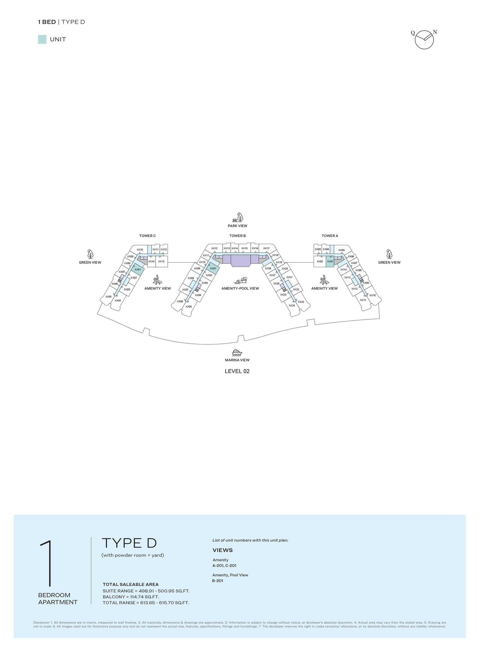 TYPICAL PLAN | - | LEVEL 02 TYPE D | 615.70 Sq Ft | Apartment |