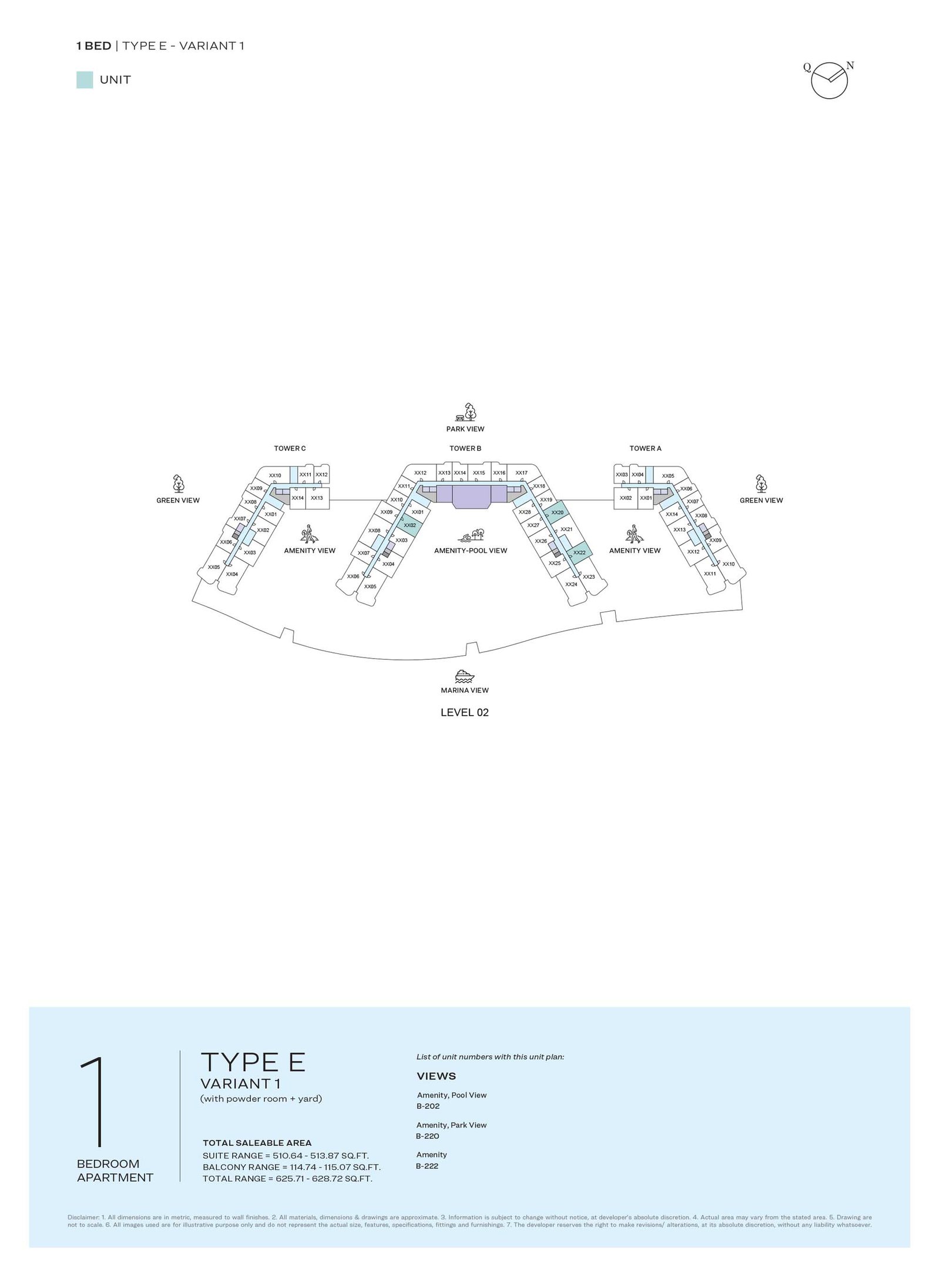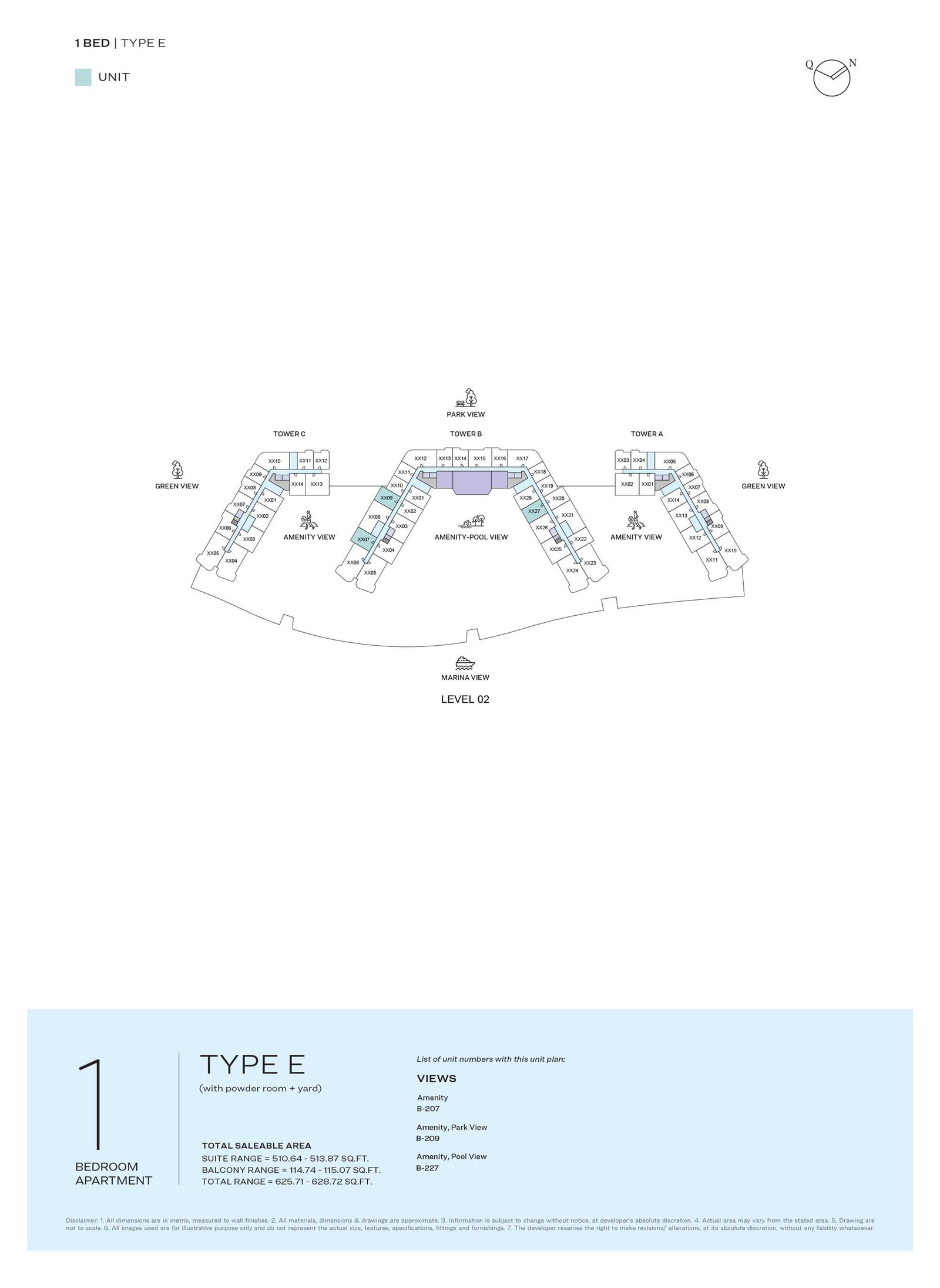 TYPICAL PLAN | - | LEVEL 02 TYPE E | 628.72 Sq Ft | Apartment |