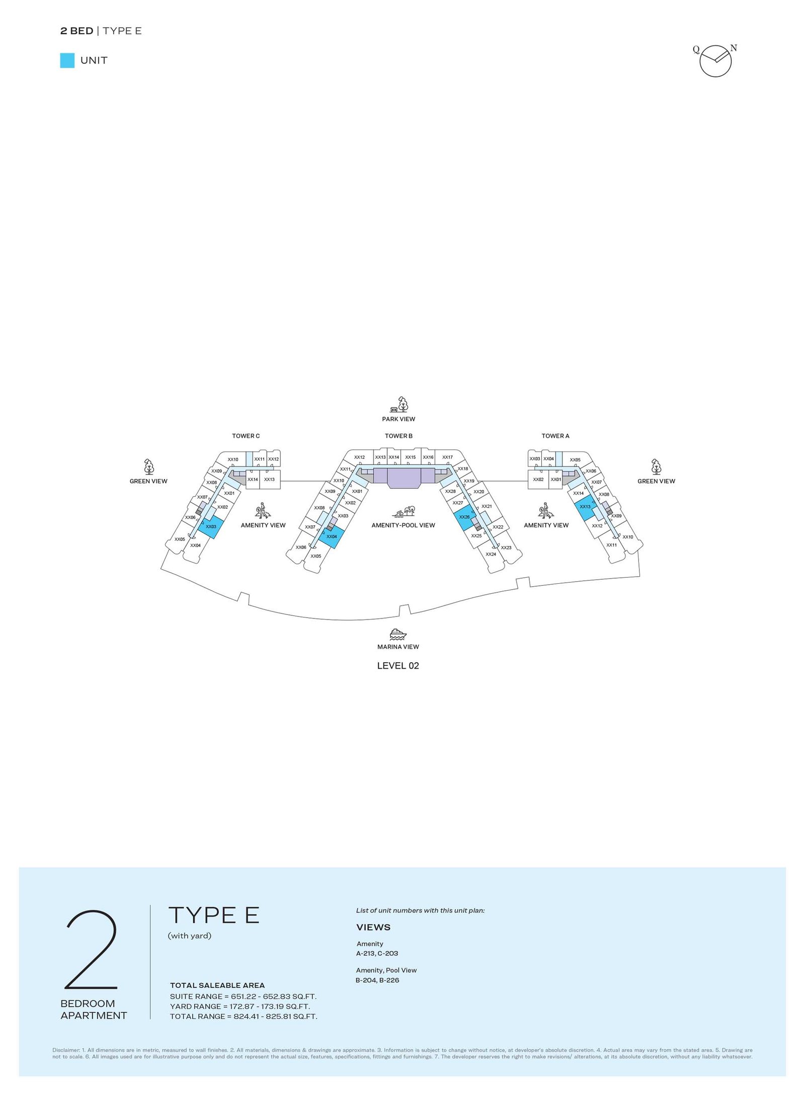 TYPICAL PLAN | - | LEVEL 02 TYPE E | 825.81 Sq Ft | Apartment |
