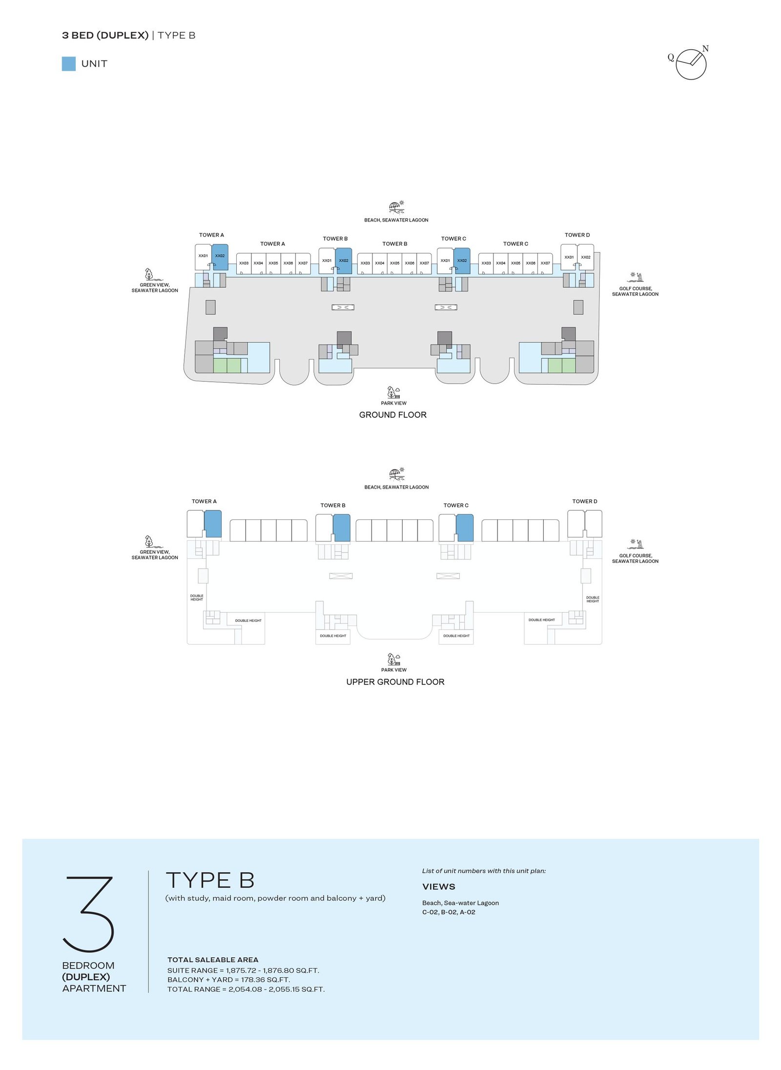 Typical Floor Plan - GROUND & UPPER GROUND FLOOR TYPE B 2055.15 Sq Ft Apartment