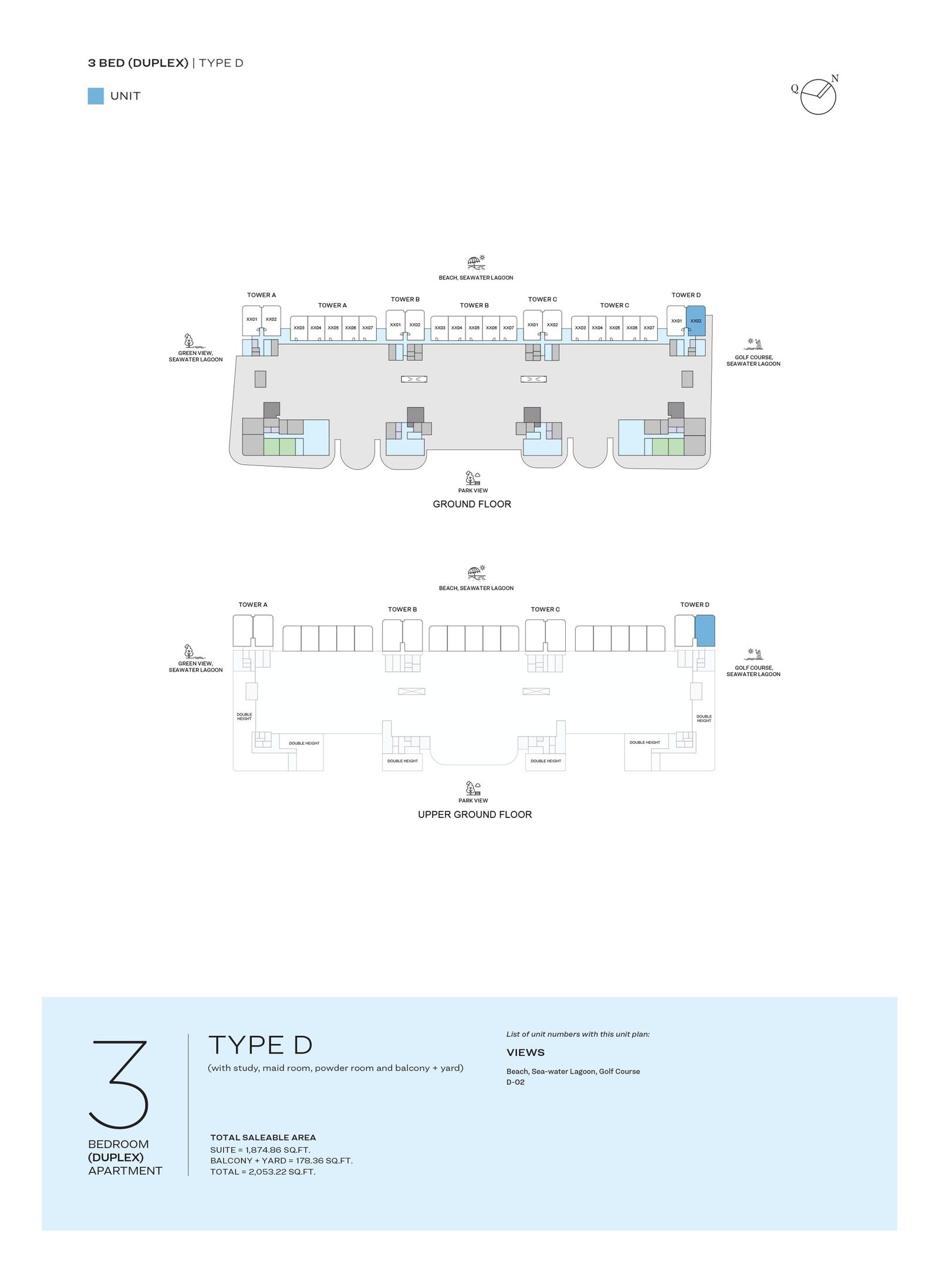 Typical Floor Plan - GROUND & UPPER GROUND FLOOR TYPE D 2053.22 Sq Ft Apartment