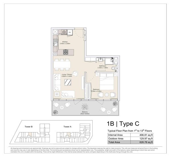1 Bedroom | - | 1 BR, Type C, Typical Floor Plan from 1st to 13th Floors | 626.78 Sq Ft | Apartment |