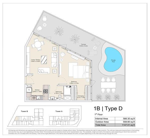 1 Bedroom | - | 1 BR, Type D, 1st Floor | 1147.01 Sq Ft | Apartment |