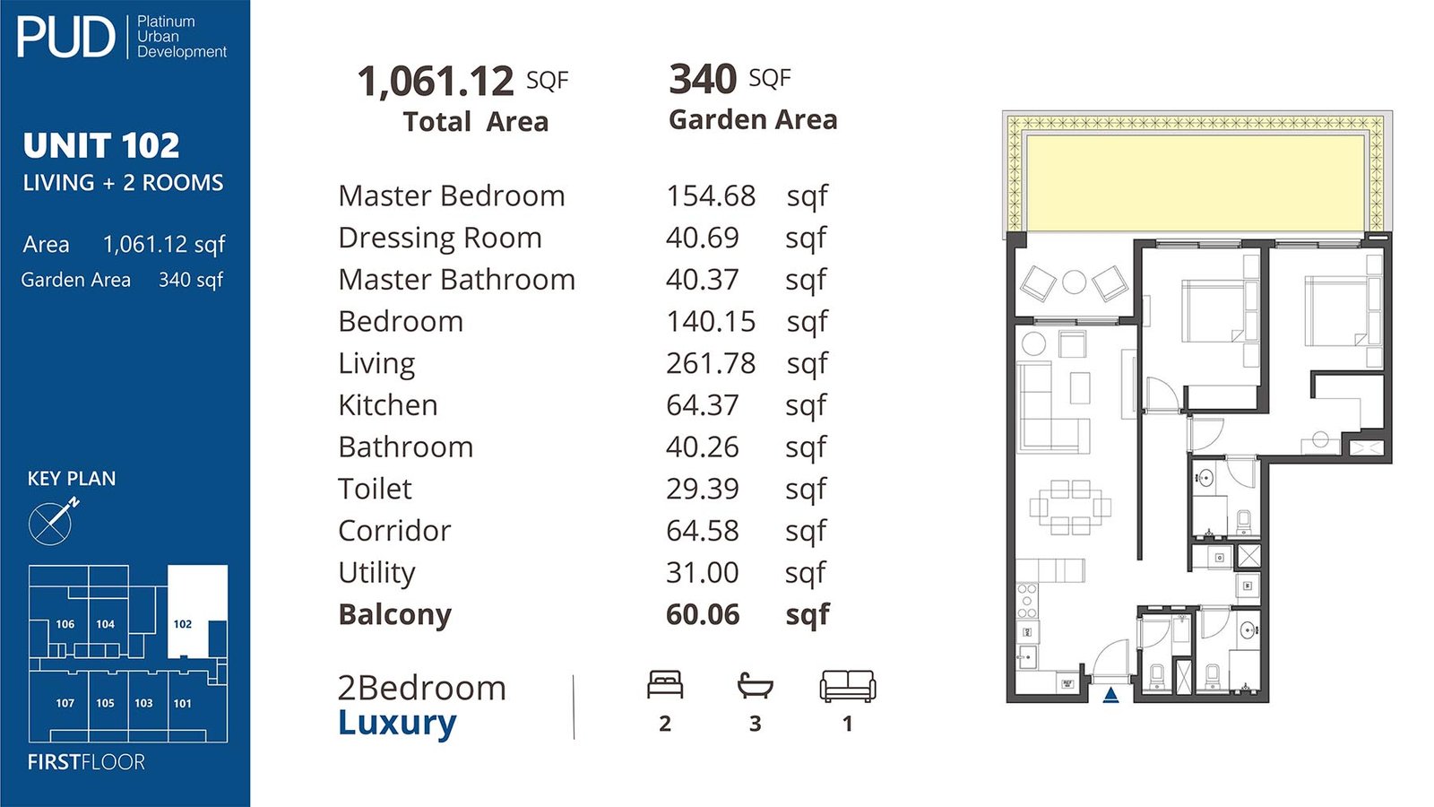 1st Floor | - | Unit 102 (Living + 2 Rooms) | 1401.12 Sq Ft | Apartment |