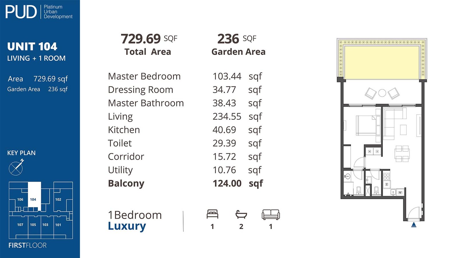 1st Floor | - | Unit 104 (Living + 1 Room) | 965.69 Sq Ft | Apartment |