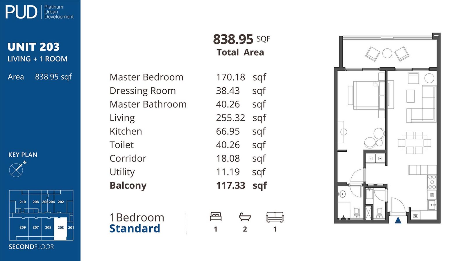 2nd Floor | - | Unit 203 (Living + 1 Room) | 838.95 Sq Ft | Apartment |