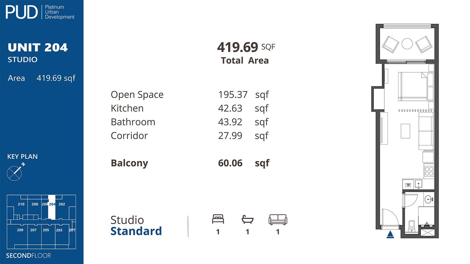 2nd Floor | - | Unit 204 (Studio Unit) | 479.75 Sq Ft | Apartment |
