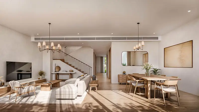 Nawayef Village at Hudayriyat Island represents the latest residential offering from Modon Properties, setting a new standard for luxury living in Abu Dhabi with its premium residences. The unique topography and sheer luxury of the façade offer more than just homes; it is a remarkable masterpiece that harmoniously blends contemporary architectural elements with the island's natural contours. Embrace the island lifestyle, where a private community flourishes, and tranquility, elevation, and refinement converge. The stunning development is beautifully situated amidst the peaks of Abu Dhabi on Hudayriyat Island, with some plots soaring up to 45 meters above sea level. Residents can relish breathtaking views of both the coastline and skyline, creating a serene atmosphere enriched by captivating visuals. A meticulous design ensures that the layout adapts effectively to the island's terrain, maintaining complete privacy and long sightlines. The living spaces seamlessly integrate with the steep landscape, providing an unparalleled sense of privacy and grandeur. The intentional design emphasizes simplicity and form, with each residence featuring extensive glasswork and open layouts that enhance the natural environment. Beyond its aesthetic appeal, the development excels in functionality, offering spacious interiors, private outdoor areas, and elevated terraces for each home. Whether you seek a peaceful retreat or a distinctive residence, this community fulfills both aspirations. Targeting discerning homebuyers who appreciate sophistication, architectural excellence, and proximity to the finest entertainment and cultural experiences in Abu Dhabi, this development is poised to become one of the city's premier residential destinations. It not only offers the opportunity to own a home but also the chance to embrace an elevated lifestyle. As Modon envisions Hudayriyat as a vibrant waterfront hub, the façade embodies this vision, representing a harmonious blend of quality and sophistication.