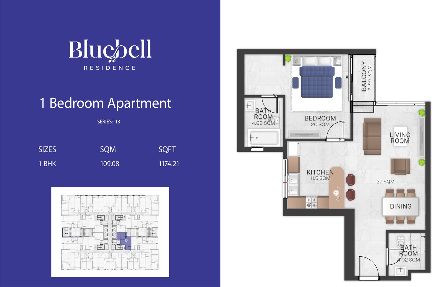 Apartment | - | 1 Bedroom, Series 13 | 1174.21 Sq Ft | Apartment |