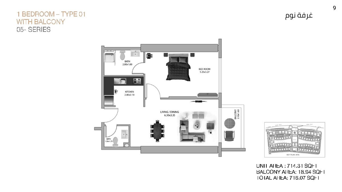 1 Bedroom | - | Type 01 | 716.07 Sq Ft | Apartment |