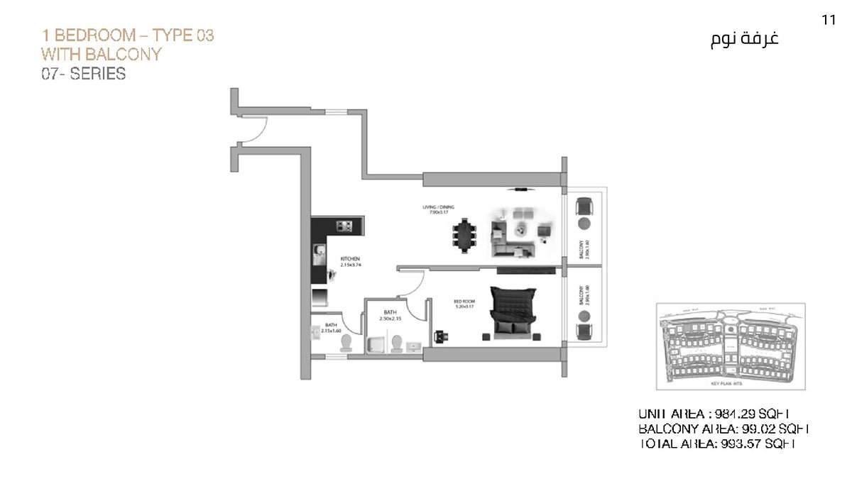 1 Bedroom | - | Type 03 | 993.57 Sq Ft | Apartment |