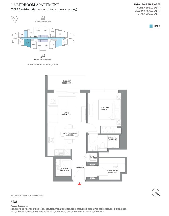 1 Bedroom | - | Type A | 639.38 Sq Ft | Apartment |