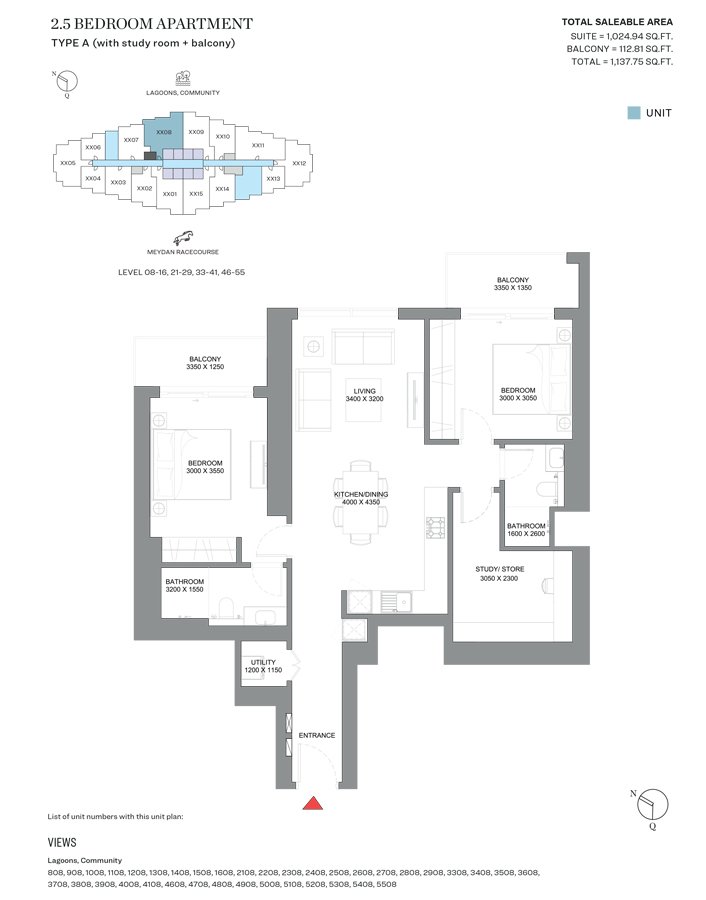 2 Bedroom | - | Type A | 1137.75 Sq Ft | Apartment |