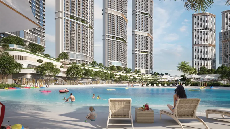 Elevate your living experience with the prestigious 340 Riverside Crescent at Sobha Hartland 2, featuring luxurious 1, 1.5, and 2-bedroom waterfront apartments. The high-rise architecture exudes elegance, presenting an exclusive opportunity to embrace life at the pinnacle of paradise, where serene waters meet crafted excellence throughout the development. This architectural masterpiece boasts a unique diamond-shaped design and provides direct access to a boardwalk, lagoon, and beach, offering residents a resort-style living experience. Situated in the sought-after Sobha Hartland 2 community, this development enjoys a prime location in Dubai, with close proximity to major landmarks such as Dubai Creek, Design District, and Downtown Dubai, placing residents right in the heart of the action. Accessible via major thoroughfares and a proposed metro station, commuting is seamless, allowing residents to explore all that Dubai has to offer. The striking architecture serves as a testament to modern innovation, as the distinctive diamond design not only captivates the eye but also maximizes natural light and breathtaking panoramic views. This iconic structure enhances Dubai’s skyline, establishing itself as a symbol of luxury. Residents can relish exclusive views of the golf course, tranquil lagoons, and captivating landscapes. Beyond its stunning architecture, this high-rise development features an impressive array of amenities designed to meet every resident's needs. Spanning two leisure levels, the amenities include sky gardens on the 18th and 43rd floors, where one can unwind amidst lush surroundings while enjoying spectacular views. The pool area, complete with sun loungers, day beds, and cabanas, creates the perfect relaxation haven. For families, a children's playroom and observation deck provide endless entertainment options, ensuring a harmonious blend of tranquility and activity. Additionally, with convenient access to community facilities, residents can enjoy a wide variety of leisure options, including lagoons and beachside access. A 1000-square-foot business plaza, clubhouse, and sports courts cater to professionals and sports enthusiasts alike. The open-air theatre, gardens, and pet park accommodate diverse interests, while fitness enthusiasts can take advantage of walking and jogging tracks, skate parks, outdoor gyms, and cycling paths, promoting an active and healthy lifestyle for all. This luxury development features beautifully designed waterfront apartments with breathtaking views, unmatched elegance and sophistication in its design and architecture, serene water vistas, and easy access to calm waters right outside your home, complemented by two levels of amenities, including sky gardens, multiple pools, and serene relaxation areas. It offers a peaceful living environment away from the city's hustle and bustle, with stunning community views, including clear sights of Dubai Al Ain Road and the city lights.