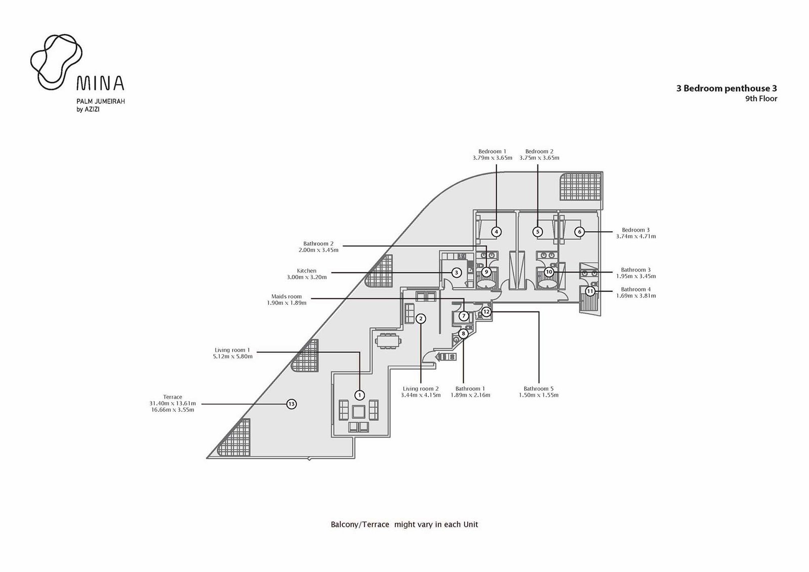 9th Floor | - | Type 3 | On Request | Apartment |