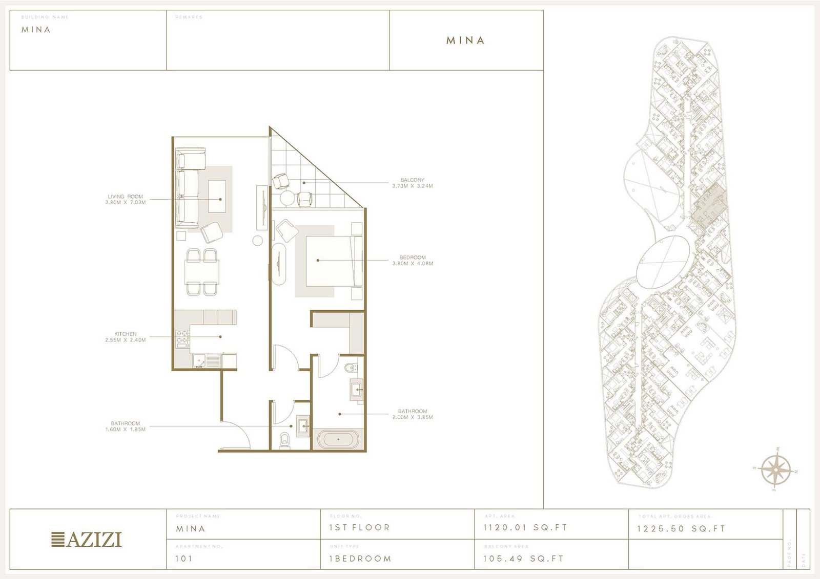 Azizi Mina is offered with a flexible payment plan, wherein you pay 5% down payment to secure the unit and 25% during construction. Subsequently, the plan also requires 70% on completion