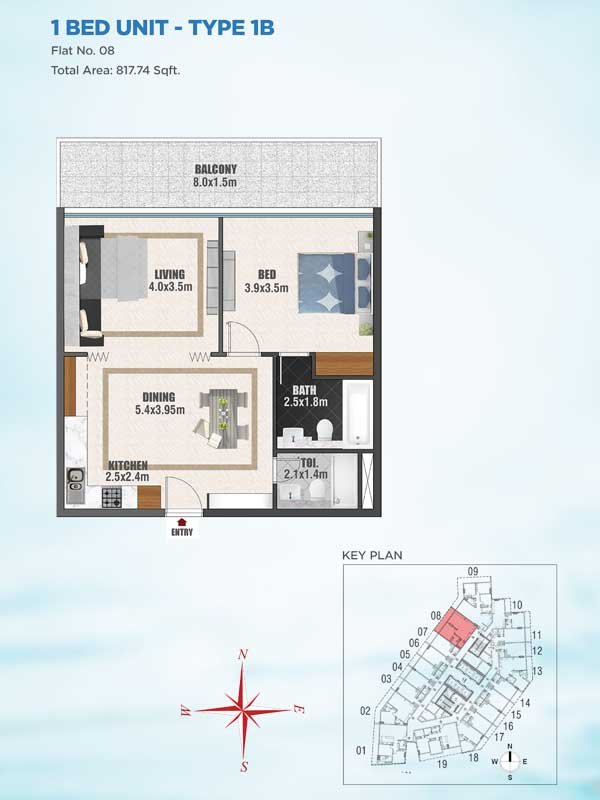 1 Bedroom | - | 1 BED UNIT - TYPE - 1B | 817.74 Sq Ft | Apartment |