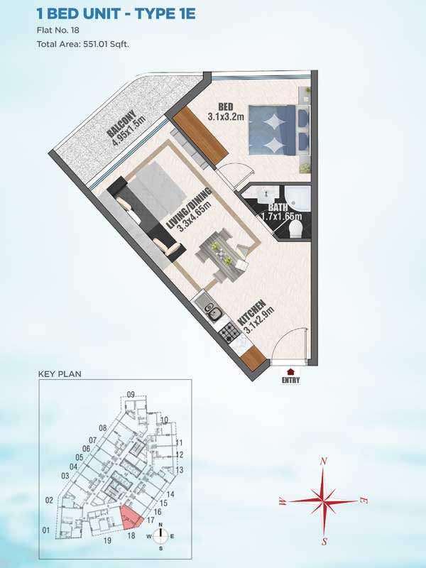 1 Bedroom | - | 1 BED UNIT - TYPE - 1E | 551.01 Sq Ft | Apartment |