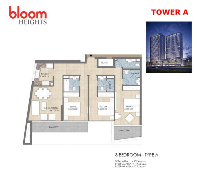 3 Bedrooms | - | Tower-A 3 Bedroom Type-A | 137.00 Sq Ft | Apartment |