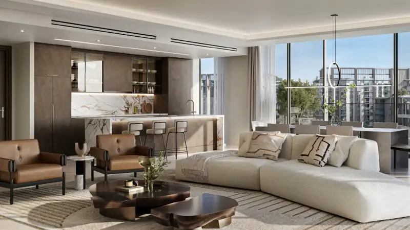City Walk Crestlane 3 by Meraas represents the third addition to the City Walk portfolio, featuring a selection of apartments, duplexes, and penthouses in the vibrant City Walk area of Dubai. This intimate low-rise cluster is thoughtfully designed to provide the same exceptional quality and amenities that residents can expect throughout the community. The façade seamlessly integrates with the lush green courtyards and lagoon-style water features that define this phase. Each unit boasts an open layout, lofty ceilings, expansive floor-to-ceiling glass windows, and generous balconies, with select units offering private terraces, creating bright and airy living spaces ideal for families or professionals seeking a tranquil and modern lifestyle. Conveniently located on Al Safa Street within City Walk, residents enjoy easy access to City Walk Mall, along with a short drive to Sheikh Zayed Road, Jumeirah Beach, Downtown Dubai, DIFC, and Dubai International Airport. This strategic connectivity facilitates effortless movement between shopping, entertainment, and business hubs. The three buildings showcase a clean and contemporary architectural style, characterized by smooth lines, extensive vertical glazing, and landscaped terraces. The apartments feature high-quality finishes, walk-in closets, and designs that promote a harmonious indoor-outdoor flow and community engagement. Water plays a significant role in the design, incorporating cascading water features, lagoon-style swimming pools, lounging areas, and infinity pools. Residents will have access to a variety of social amenities, including a fitness center, yoga terraces, outdoor fitness equipment, social hubs, jogging and cycling tracks, and a cinema amphitheater, all surrounded by beautifully landscaped courtyards to enhance the resort-like atmosphere.