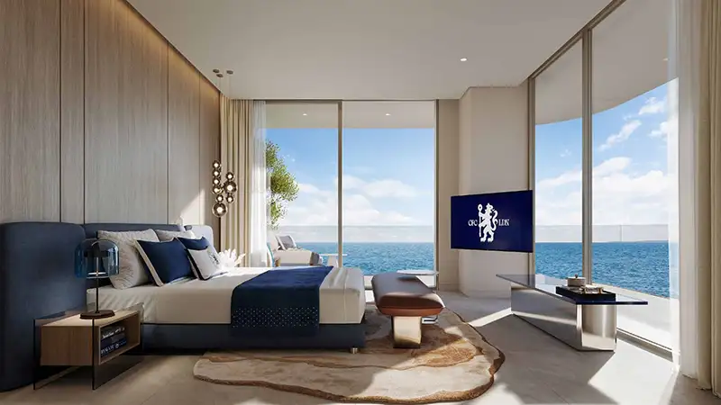 Chelsea Residences 2 at Dubai Maritime City stands at the heart of Damac Properties, featuring an impressive selection of 1, 2, and 3-bedroom waterfront apartments in one of Dubai’s most prestigious locations. This luxury development, situated alongside the water's edge, embodies the vibrant pulse of modern living and sets a new benchmark for branded residences. Drawing on the sporting legacy and recognition of Chelsea FC, this project is the first football-themed branded residence in Dubai. Building on the success of its predecessor, this phase seamlessly integrates the towers, creating an architectural masterpiece that enhances one of the city’s most visually captivating waterfronts. The design emphasizes a harmonious blend of energetic sport-inspired elements and sophisticated coastal elegance. The expansive glass walls not only reflect the horizon but also invite natural light into the interiors. The generously sized apartments, with floor-to-ceiling heights of 3.4 meters, create an airy atmosphere, while large windows frame stunning views of the Dubai skyline and the Arabian Gulf. Each unit features modern kitchens, spa-like bathrooms, and spacious living areas, offering a personalized environment that balances style and functionality for everyday living. Nestled in a redeveloped waterfront area, the location is exceptionally picturesque. With access to the latest city infrastructure, including the Shindagha Corridor and Wafi Interchange, residents can easily reach Downtown Dubai, DIFC, Port Rashid, and other popular destinations within minutes. The development connects six towers and promotes a walkable environment with pathways surrounded by lush landscapes, easy access to the beachfront, retail lounges, and social spaces. Beyond the interiors, the façade offers a complete living experience. The fitness and wellness facilities meet global standards, anchored by the Chelsea Athletic Training Centre, which features aqua-themed performance zones, cryotherapy, halotherapy suites, and aerial yoga rooms. The Stamford Summit rooftop pitch provides a unique setting for football, while jogging tracks, outdoor gyms, and play areas encourage an active lifestyle. For leisure, residents can enjoy the Chelsea Blue Beach Club, the Infinity Beach Pool, or serene retreats like the Forest Relaxation Pods and Tranquillity Falls. The commitment to cost, quality, and productivity ensures that every amenity is designed to inspire, energize, and connect, reflecting the discipline and elegance of Chelsea FC.