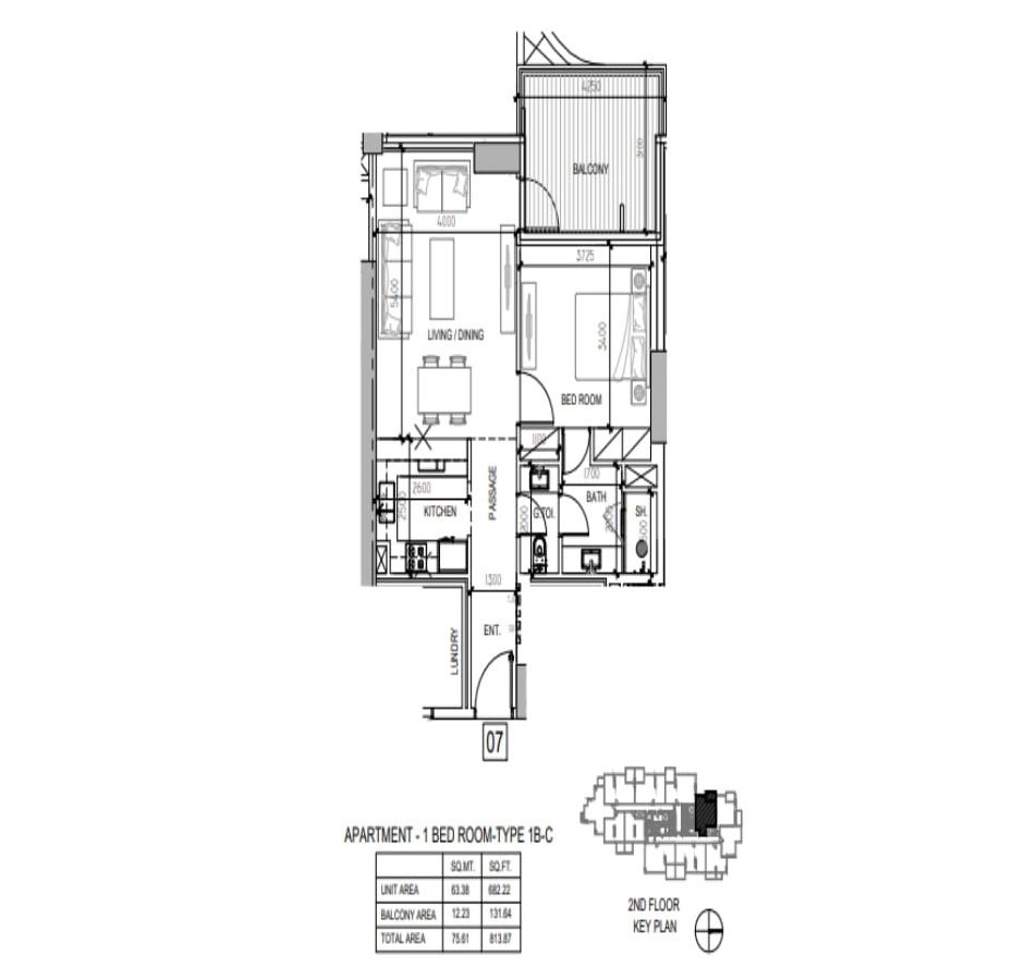 1 Bedroom | - | Type 1B-C | 813.87Ā Sq Ft | Apartment |