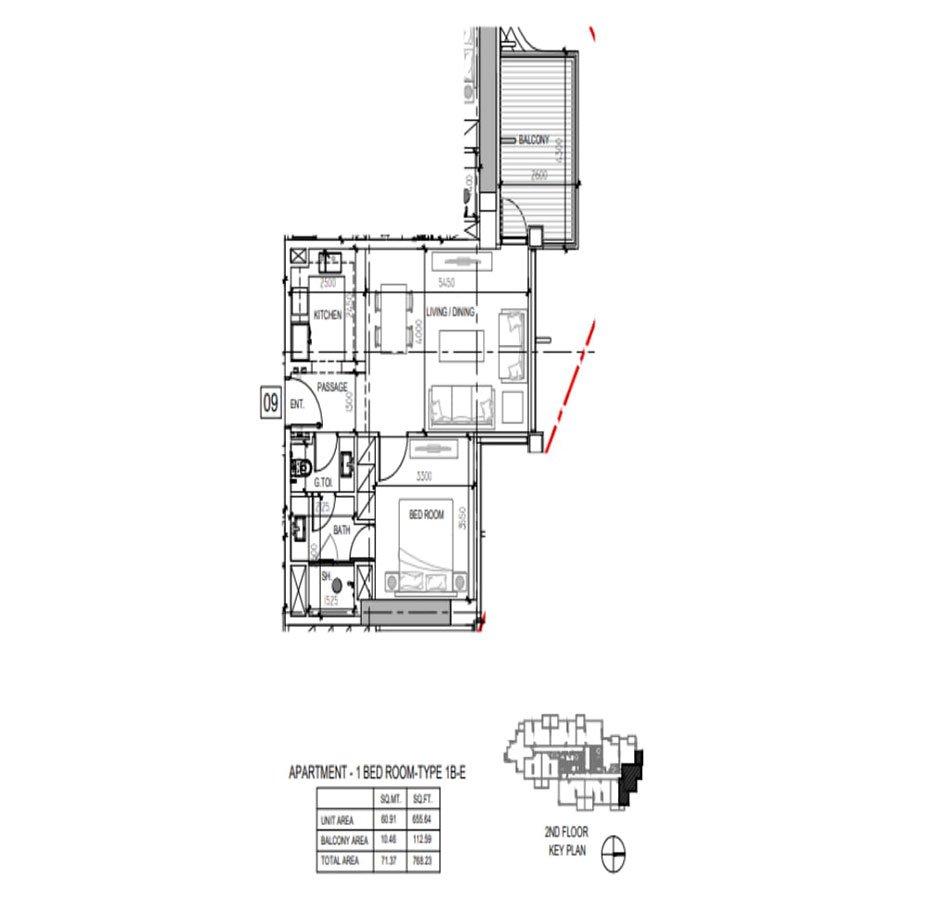 1 Bedroom | - | Type 1B-E | 768.23Ā Sq Ft | Apartment |