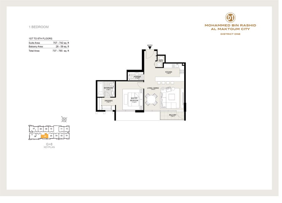 1 Bedroom | - | 1 Bedroom, 1st to 8th Floor, 785 sq ft | 785.00 Sq Ft | Apartment |
