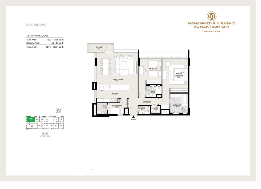 2 Bedrooms | - | 2 Bedroom, 1st to 8th Floor, Size 1273 sq ft | 1273.00 Sq Ft | Apartment |