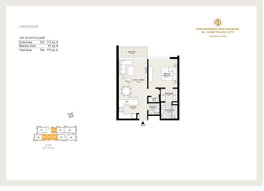 1 Bedroom | - | 1 Bedroom, 1st to 6th Floor, Size 773 sq ft | 773.00 Sq Ft | Apartment |