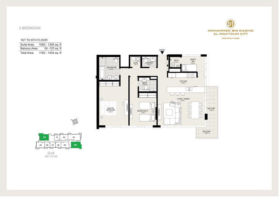 District One Residences 6 is a distinguished development by District One, featuring 1, 2, and 3-bedroom apartments situated within the vibrant District One of MBR City, Dubai. This G+6 residential building is part of a gated community, enhanced by a stunning crystal lagoon and lush greenery. The low-rise towers are complemented by beautifully landscaped surroundings and a minimalist design that emphasizes smart functionality, ample natural light, and peaceful living. Crafted with an emphasis on comfort and style, the interiors and exteriors showcase a blend of elegance and essential amenities, including picturesque gardens and a pristine beach. This development offers an esteemed address, conveniently located just minutes from Dubai's renowned attractions, landmarks, and transportation links. It is adjacent to the Meydan Racecourse, a 9-hole floodlit golf course, The Meydan Hotel—a luxurious 5-star hotel beside the racetrack—and the Meydan One Mall. Key features include a 7 km crystal lagoon, a 14 km beach shoreline, 26 million square feet of greenery, and an 8.4 km cycling and running track, all within elegantly designed residences.
