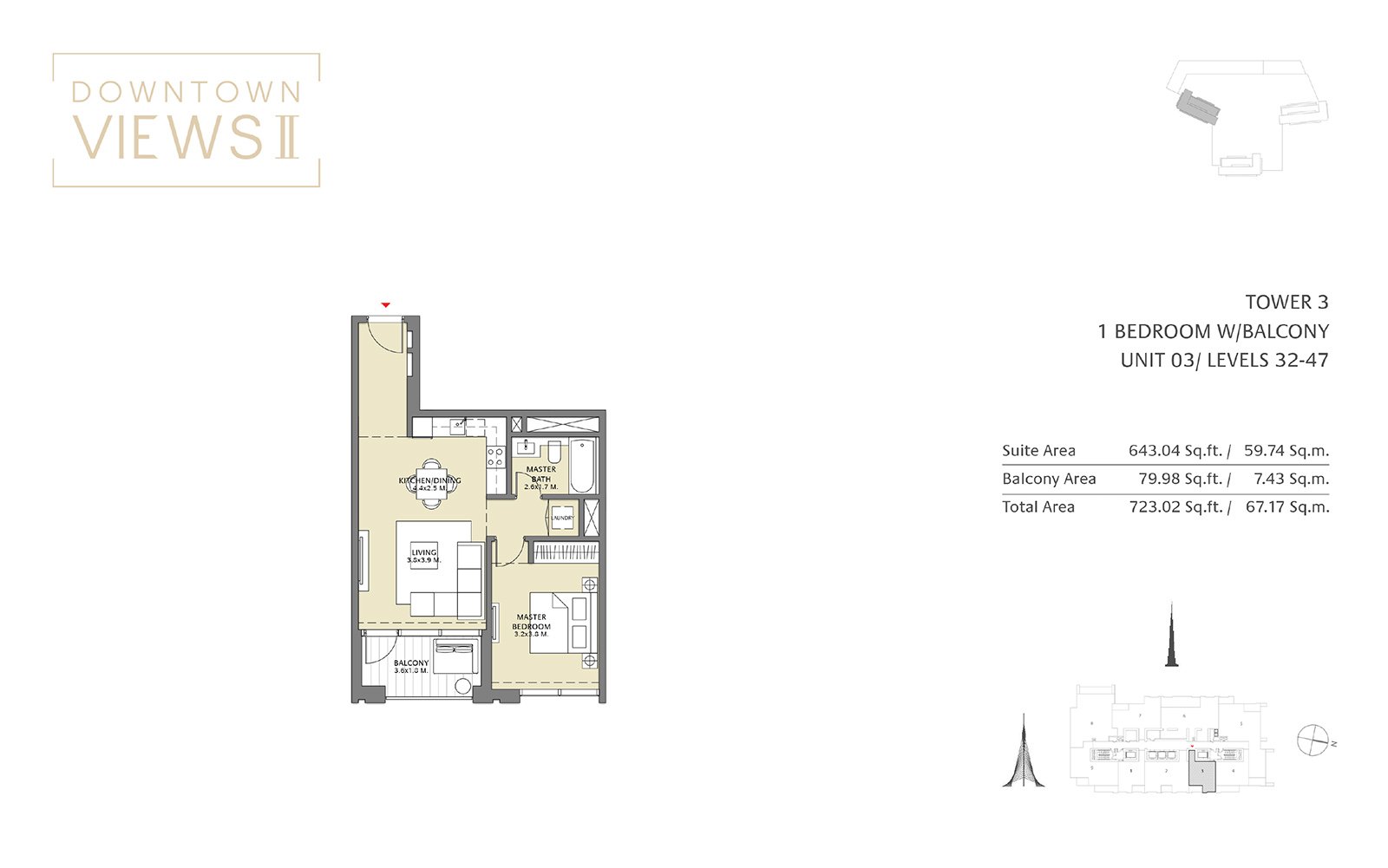 Tower 3 - 1 Bedroom | - | Tower 3, 1 Bedroom Unit 01, Size 723 Sq Ft | 723.00 Sq Ft | Apartment |