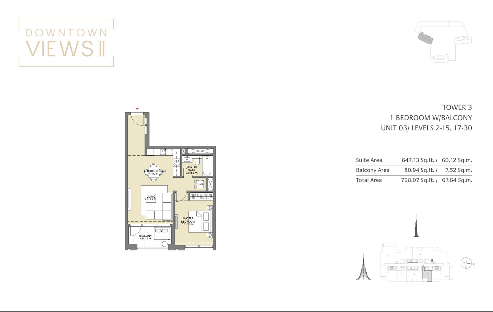 Tower 3 - 1 Bedroom | - | Tower 3, 1 Bedroom Unit 01, Size 728 Sq Ft | 728.00 Sq Ft | Apartment |