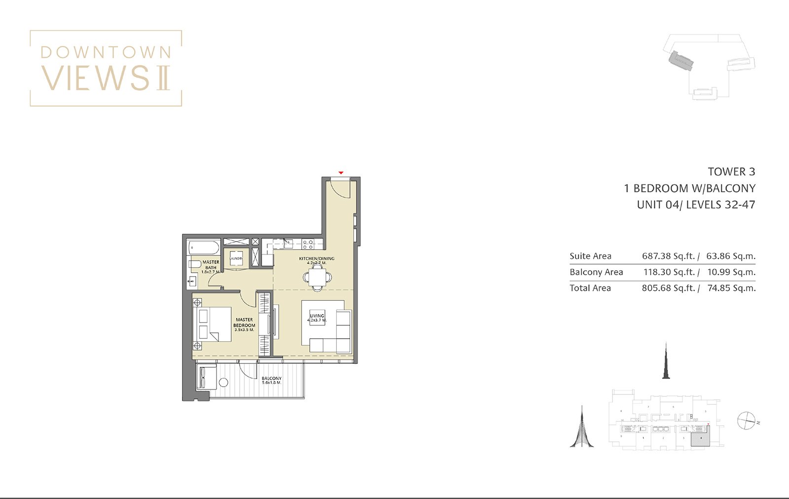 Tower 3 - 1 Bedroom | - | Tower 3, 1 Bedroom Unit 04, Size 805 Sq Ft | 805.00 Sq Ft | Apartment |