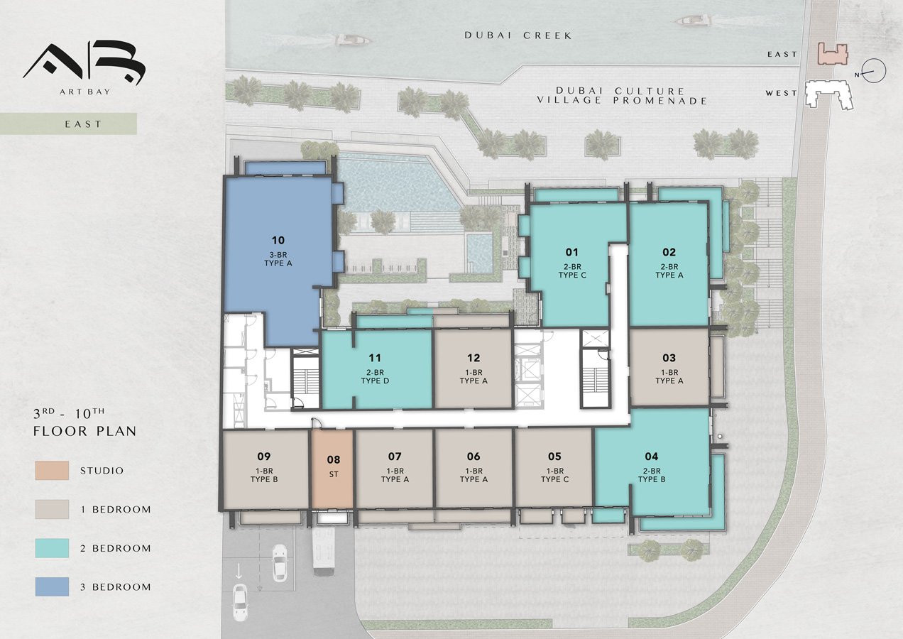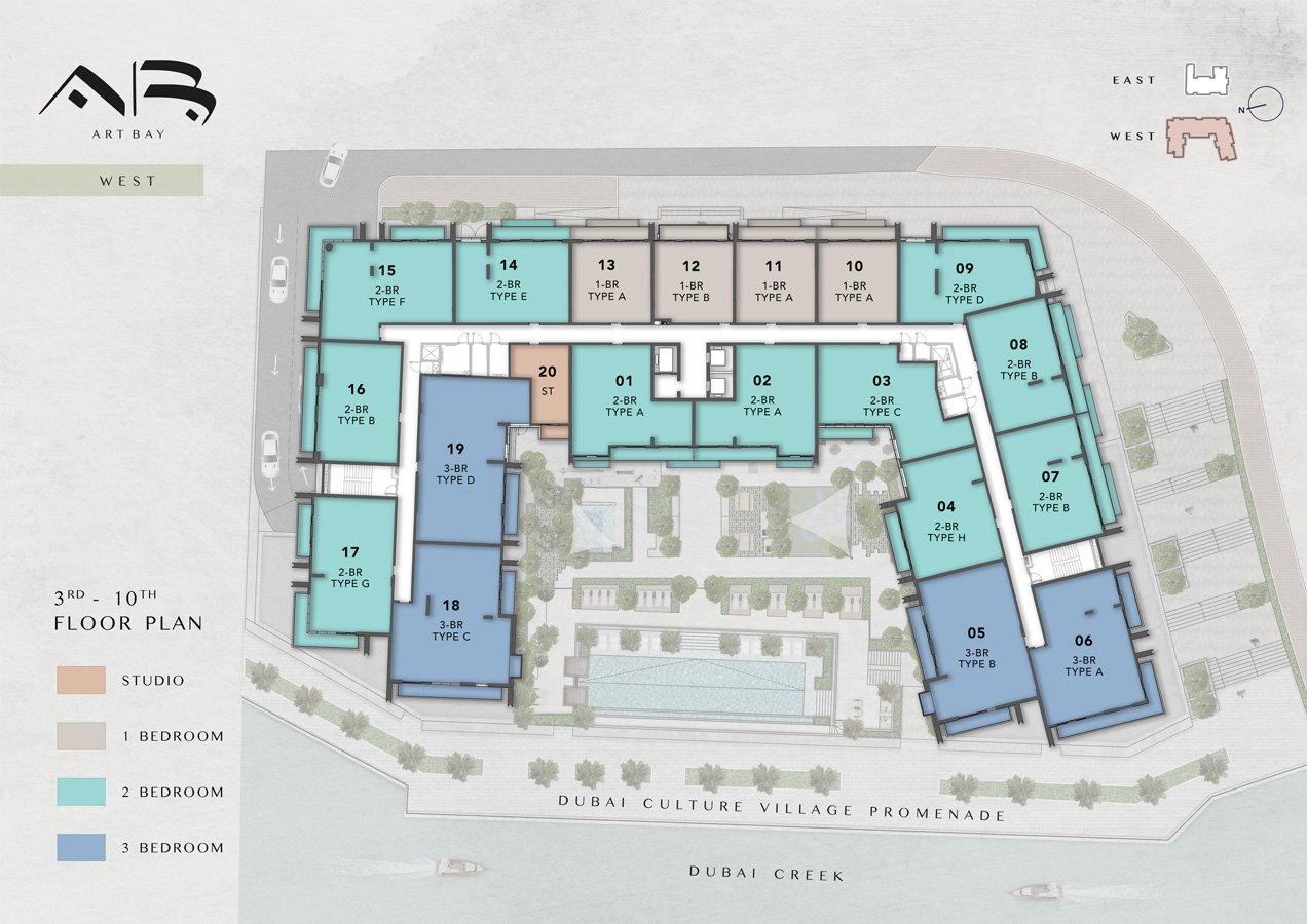Art Bay at Al Jaddaf Waterfront is a remarkable new residential development by Ellington Properties, featuring exclusive studios and one, two, and three-bedroom apartments with stunning views of Dubai Creek. This residential sanctuary redefines urban living through Dutco's unwavering commitment to excellence, effectively merging art, culture, and wellness into the everyday experiences of its residents. Nestled in the vibrant heart of Al Jaddaf, it offers excellent connectivity due to its proximity to major highways and the metro. Residents benefit from quick access to Al Khail Road, making it easy to reach notable destinations such as Zabeel Stadium, Al Wasl Indoor Stadium, Downtown Dubai, Business Bay, and the iconic Burj Khalifa. For those who thrive on the energy of city life, Downtown Dubai and Dubai Creek Tower are just a short drive away, while the prestigious Palm Jumeirah is conveniently located within a minute's distance. In addition to its prime location, Art Bay promises a luxurious and convenient lifestyle, complete with a variety of amenities. The development includes retail spaces, a 24/7 concierge service, an elegant lounge, a fully-equipped gym for fitness enthusiasts, and serene community gardens for relaxation. Outdoor working pods cater to professionals in search of an inspiring workspace, while the co-working area adds versatility to the daily routines of residents. This development is a tribute to the harmony of wellness, offering not just a place to live but a vibrant community enriched by thoughtful design and cultural integration. As a waterfront development with exceptional connectivity, breathtaking views, and a curated lifestyle, it invites discerning individuals to embrace the pinnacle of urban living within Dubai's dynamic arts and culture scene. Key highlights include its location in one of Dubai's most exciting new areas, immersing residents in a thriving arts and culture environment. The low-rise architectural design is seamlessly complemented by exclusive lifestyle amenities, creating spaces for residents and guests to relax and enjoy. Residents can easily access significant landmarks such as Royal Zabeel Palace, Wafi Mall, Downtown Dubai, and Dubai Creek Tower within minutes. The integration of wellness into daily life is evident through a variety of amenities, including a well-equipped gym, community gardens, and outdoor leisure areas. Families will appreciate the dedicated kids' play area and multipurpose room, enhancing the overall living experience.