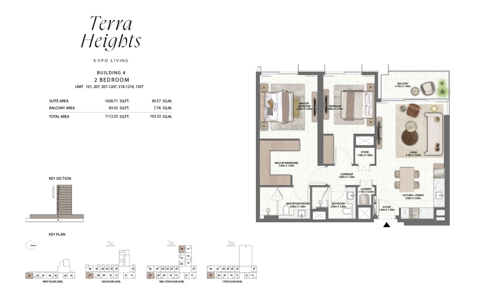 Building 4 - UNIT (BETWEEN 101 - 1307) 1112.23 Sq Ft Apartment