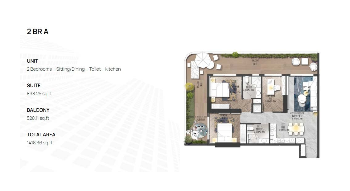 2 Bedroom | - | TYPE A | 1418.36 Sq Ft | Apartment |