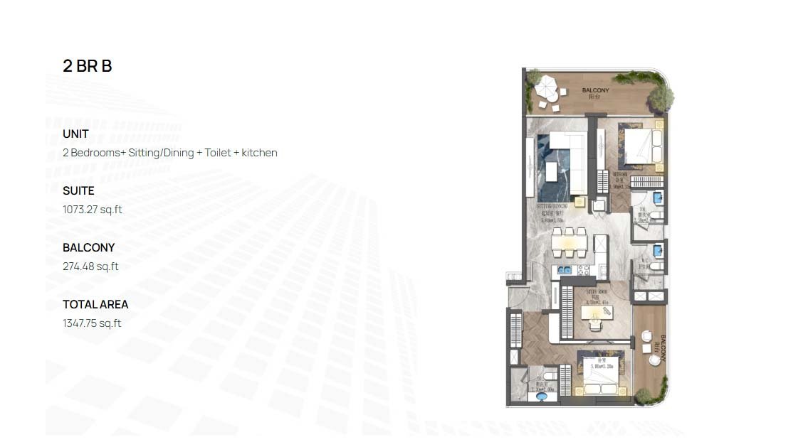 2 Bedroom | - | TYPE B | 1347.75 Sq Ft | Apartment |