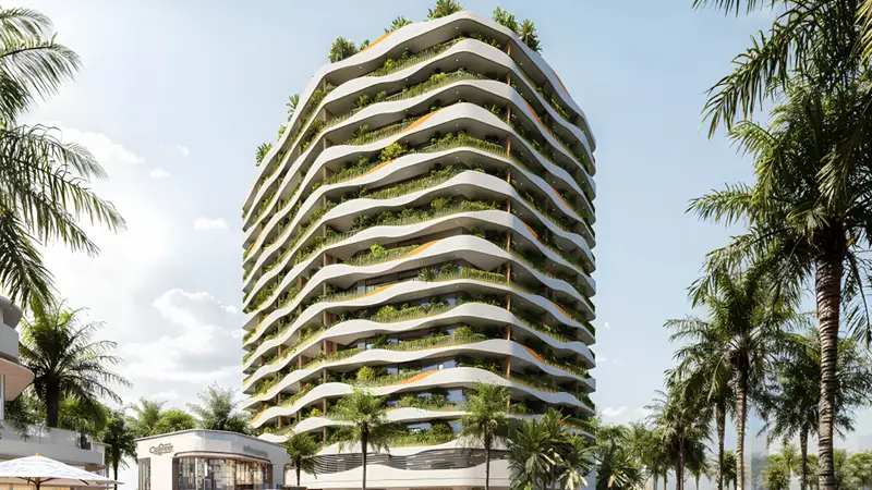 Forest City Tower 2 at Majan represents a premium residential development that showcases exceptional architectural design and ambitious vision by Al Helal Al Zahaby. This striking 15-storey residential building, inspired by nature, introduces a fresh perspective on modern living. Its façade features cascading greenery and organic, wave-like balconies that create a vertical forest within the vibrant Majan area of Dubailand. The integration of biophilic design with urban sophistication not only enhances its visual appeal but also reflects a strong commitment to eco-friendly living. The second phase of this project transcends the concept of a mere building; it establishes a life ecosystem where architecture and nature harmoniously coexist. Designed to enhance well-being, the development benefits from abundant natural light, refreshing greenery, and expansive outdoor spaces. The curved balconies, adorned with lush plant life, contribute to cooling the environment, improving air quality, and fostering a comfortable microclimate for residents. With thoughtfully designed studios and spacious residences, each home connects seamlessly to the outdoors while offering modern amenities and stylish finishes. Located in Majan, Dubailand—a rapidly emerging hub of leisure, culture, and connectivity—this development provides easy access to Dubai's most iconic attractions while offering a peaceful retreat. The low-rise design balances aesthetics and functionality, with floor-to-ceiling windows offering breathtaking views of the Dubai skyline and open-plan layouts maximizing space and versatility. A blend of high-quality materials and neutral color schemes ensures timeless elegance, allowing homeowners to personalize their spaces. The prime location grants convenient access to major highways, shopping centers, schools, and healthcare facilities, appealing to a diverse range of buyers. More than just a residence, this project promotes a lifestyle that embraces both modern conveniences and natural surroundings. A community-focused approach encourages social interaction and well-being through shared spaces, including terraces with greenery, shaded seating areas, and thoughtfully designed communal spaces that invite residents to connect, unwind, and recharge. The property features a meticulously maintained swimming pool, offering a refreshing escape, while an outdoor gym caters to fitness enthusiasts in a serene, open-air setting. Additionally, a designated children's play area ensures that young residents have a safe and stimulating environment to enjoy. All amenities have been thoughtfully crafted to uphold the sustainable ethos of the building while addressing the diverse needs of its community.