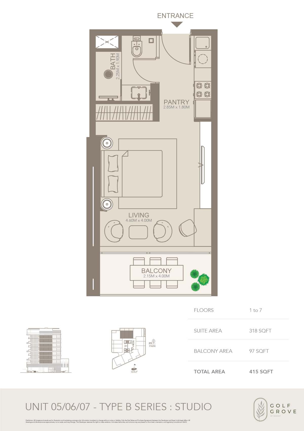 Floor 1 To 7 - UNIT 05-07 415.00 Sq Ft Apartment