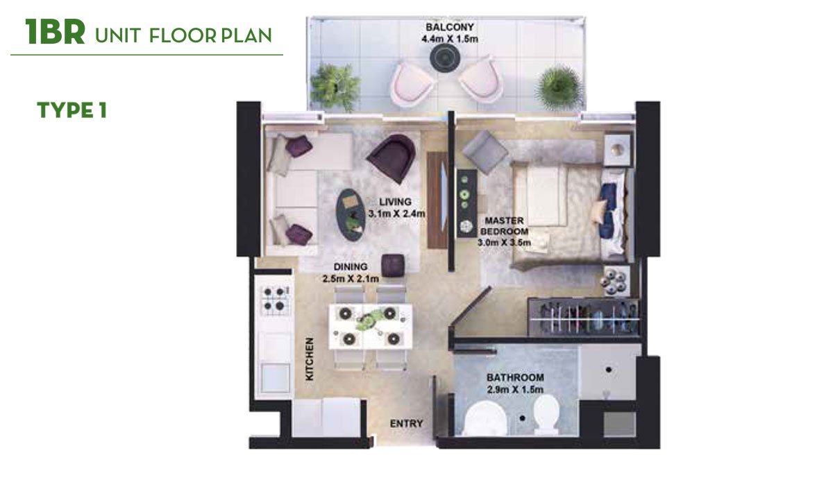 1 Bedroom | - | 1 Bedroom Type 1 | 431.00 Sq Ft | Apartment |